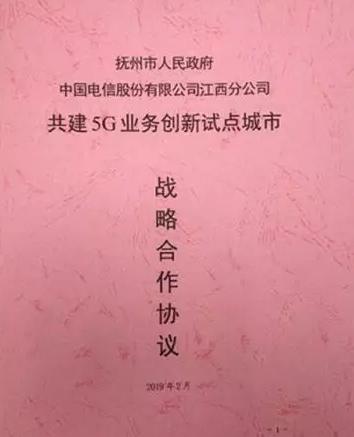 为助力抚州市数字产业经济高速发展,江西电信分公司与抚州市人民政府在2019年2月共同签订了共建5G业务创新试点城市的战略合作协议,将抚州市作为省内首批5G业务创新试点城市,推动5G在远程教育、智慧旅游、智慧交通、智慧城管、车联网等产业及其应用领域建立合作伙伴关系,共同推动在抚州试点示范的5G应用成为电信集团公司标杆应用。